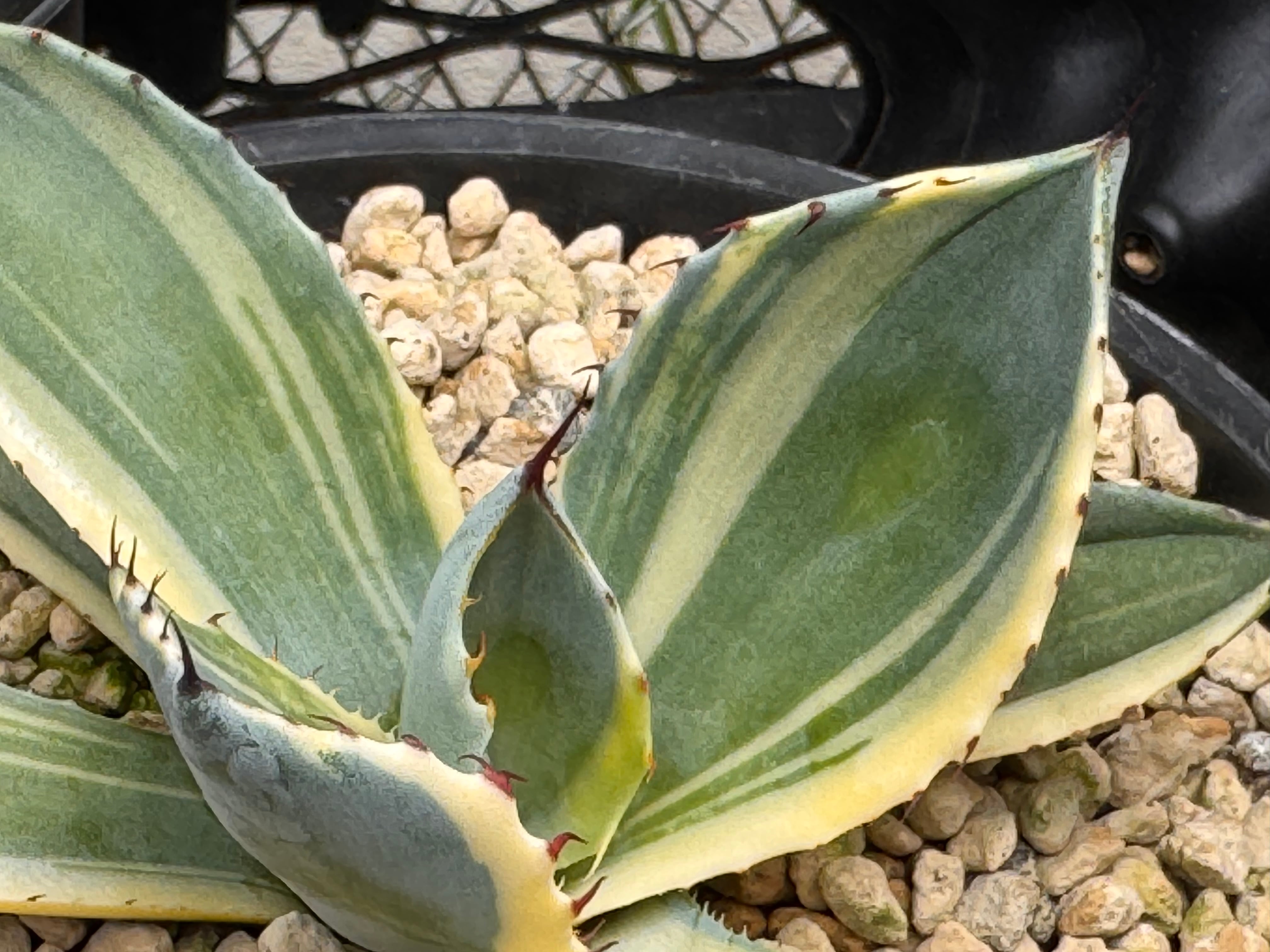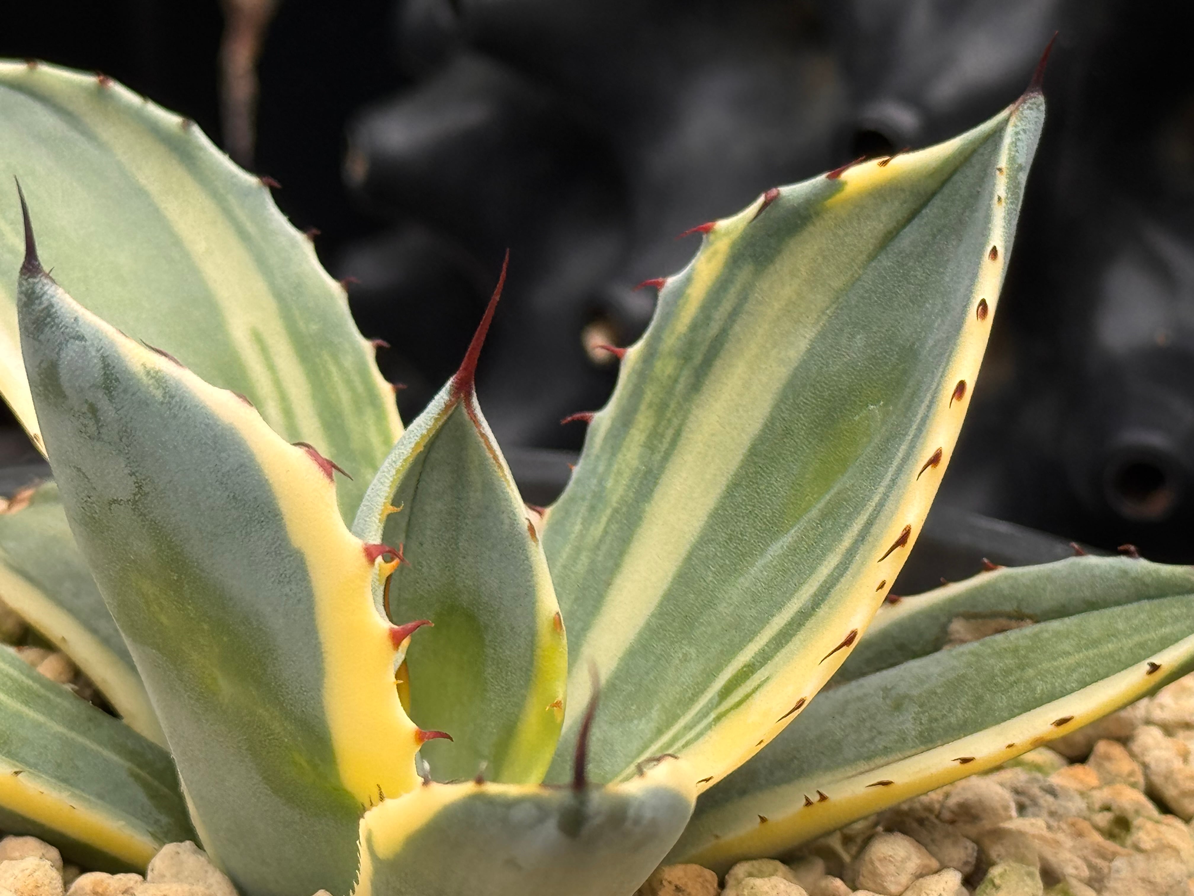 2023年にアメリカからハンティントンブルーバリエガータの名前で中株を輸入し、その後カットし出てきた仔株になります。